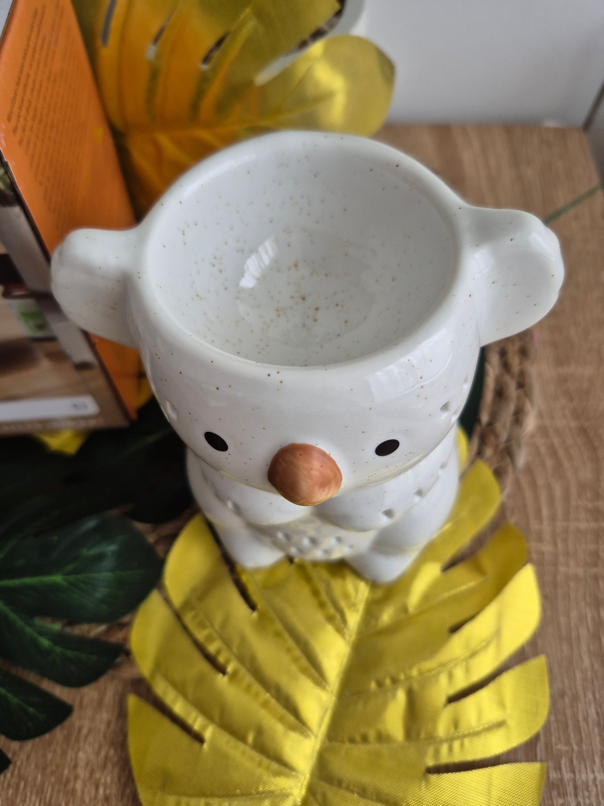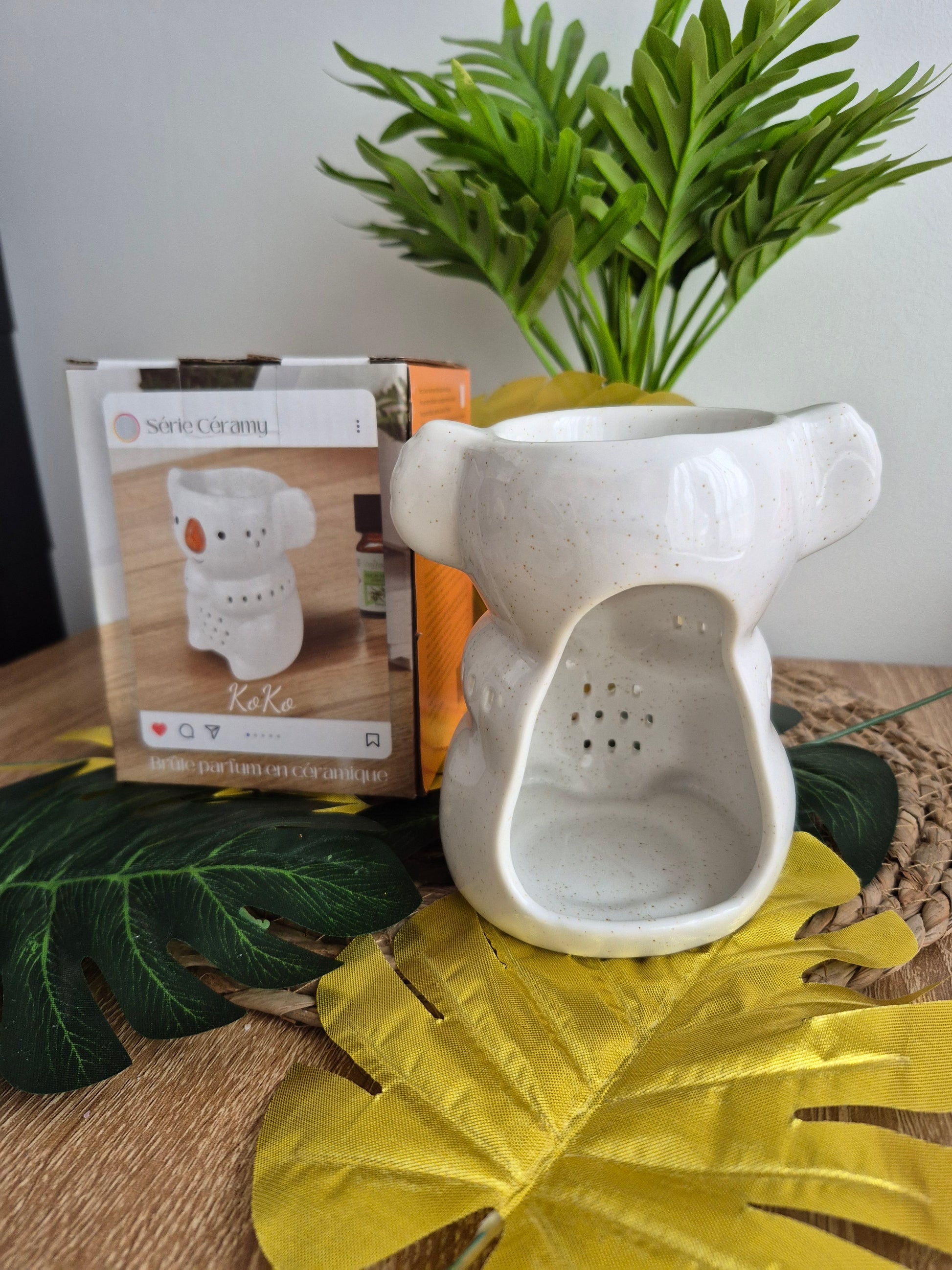 Ajoutez une touche d’originalité et de confort à votre espace avec notre brûleur de parfum en céramique en forme de koala. Conçu pour allier esthétique et fonctionnalité, ce brûle parfum est bien plus qu’un simple diffuseur ; c’est une pièce décorative captivante qui apportera chaleur et personnalité à votre maison.